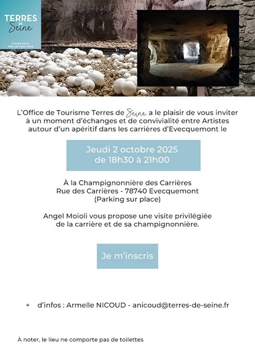L’Office de tourisme Terres de Seine vous invite à un moment d’échanges et de convivialité entre artistes du Territoire, autour d’un apéritif, le jeudi 2 octobre 2025 de 18h30 à 21h.