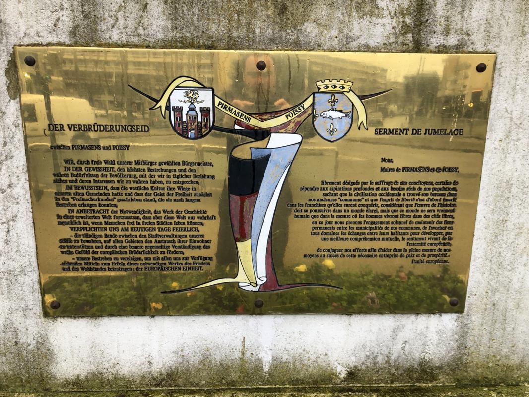 Je me permets de vous contacter au nom de la Ville de Poissy concernant le serment de jumelage Poissy-Pirmasens, qui a été abîmé par le temps. Vous trouverez en pièce jointe une photo illustrant son état actuel.