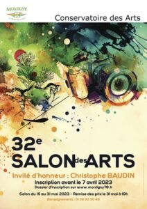 Le 32ème Salon des Arts de Montigny-le-Bretonneux se tiendra au Conservatoire des Arts du lundi 15 au mercredi 31 mai 2023 La remise des prix aura lieu le mercredi 31 mai à 19h00. Ce Salon est ouvert aux artistes et aux œuvres de tous styles et techniques. Chacune des catégories représentées est récompensée par un prix de la ville (chèque de 120€ et une œuvre est également récompensée par le prix du public (chèque de 120€). L’artiste invité est Christophe BAUDIN et présentera lors de cette édition une sélection de ses œuvres. Pour participer à ce rendez-vous, vous trouverez ci-joint […]