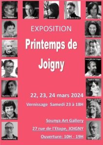 22, 23, 24 mars Vernissage samedi 23 mars à 18h à Sounya Art Gallery Ouverture 10h 19h