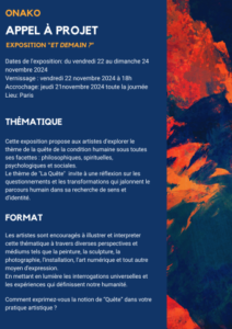 Étudiants en Marché de l'Art recherchent artistes pour exposition collective. Nous sommes à la recherche de photographes, peintres, sculpteurs, et artistes de toutes disciplines pour participer à une exposition collective […]